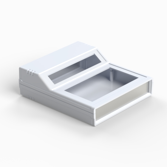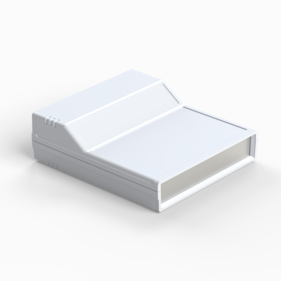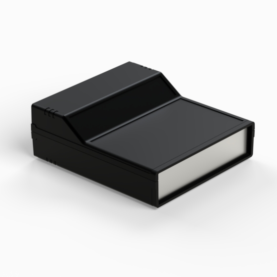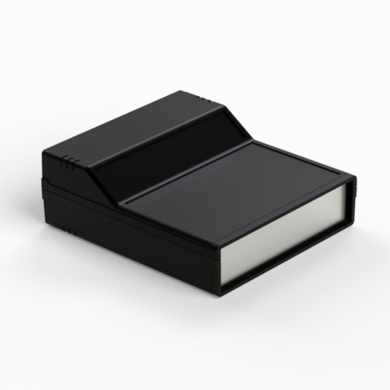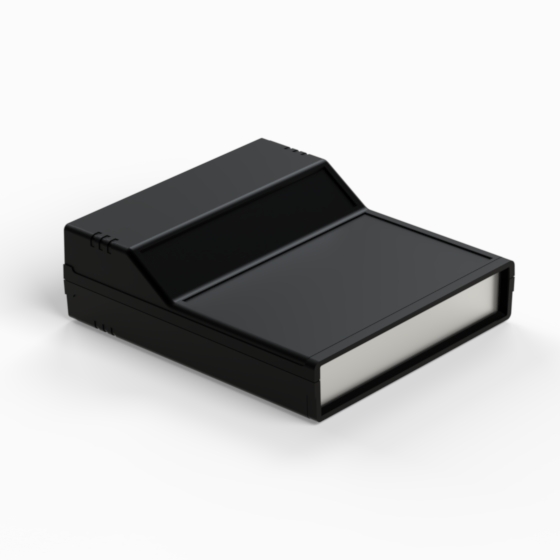 Contenitori in ABS con superfici opache dotati di due pannelli frontali in alluminio di spessore 1 mm. Entrambi i semigusci presentano guide e punti di fissaggio per PCB. Superficie opaca. I modelli “242” e “243” hanno la parte superiore inclinata di 45°. I modelli “242/O” e “243/O” sono dotati di due aperture nel guscio superiore. Chiusura con sole due viti.Disponibili su richiesta pannelli in ABS di colore grigio scuro (Mod. PP223 e PP233), contatti a clip per batteria 9V (AB9).