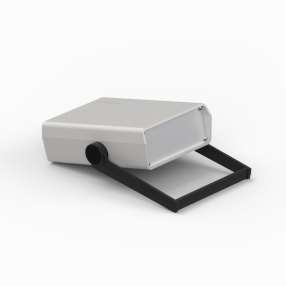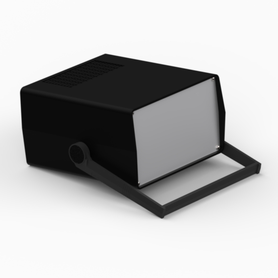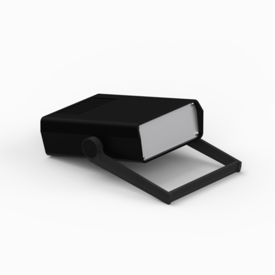 Contenitori in ABS con superfici opache dotati di maniglia con otto diverse inclinazioni e due pannelli frontali in alluminio di spessore 1 mm. I gusci superiori ed inferiori sono dotati di una foratura per aerazione e sono dotati all’interno di punti di fissaggio per PCB. Chiusura a otto viti.