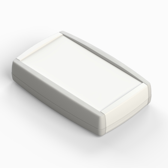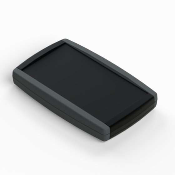 Contenitore palmare in ABS con ai lati profili in poliuretano (TPU). Superfici opache con area superiore ribassata per alloggiamento tastiera a membrana o pannello in alluminio. I modelli contrassegnati da “-B” sono dotati di alloggiamento per batteria da 9V o due batterie stilo da 1,5V. I modelli con “-B2” dispongono di un vano portabatteria per quattro pile stilo da 1,5 V (AA) oppure due batterie da 9V (PP3). Chiusura a quattro viti. Disponibile su richiesta pannello in alluminio (Mod. APTB) e tastiera a membrana standard “M” o “MW” (con finestra per display).