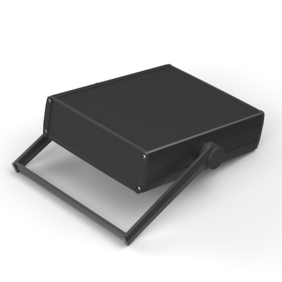 Extruded aluminium cases with high quality painted finishing and sliding cover aluminium panel. Two ABS front panels, internal slots for PCB’s. The models with “-H” have a plastic handle bar with eight position locking. Two different lengths. Closing by eight screws.