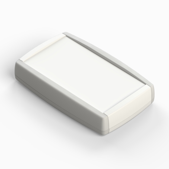 ABS enclosures with new soft-touch contoured shape. By utilising multi-shot moulding technique, Teknet features an ergonomic design of elastomer grips (TPU) on the side of the case. The models with “-B” have a battery compartment for two 1.5V mignon-cells (AA) or one 9V flat battery (PP3). The models with “-B2” have a battery compartment for four mignon cells 1,5V (AA) or two flat batteries 9V (PP3). Matt surface finish. Closing by four screws. Upon request aluminium panel “APTB”, Keypad membrane “M” or “MW” (with transparent display area).