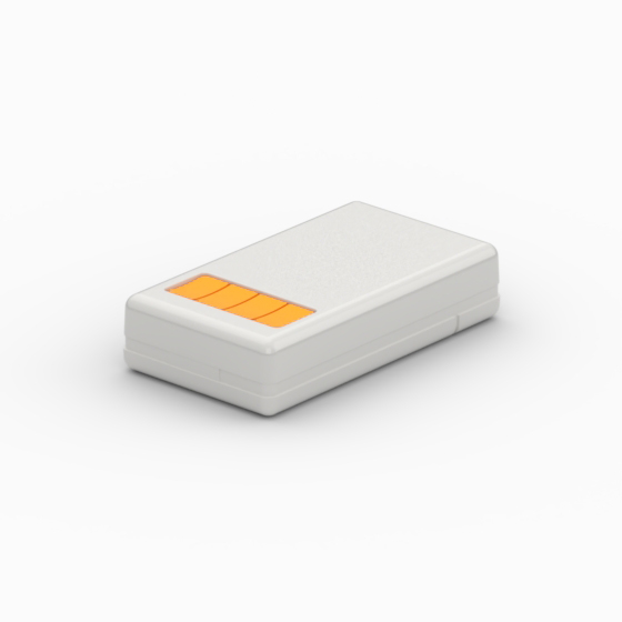 ABS enclosures with rounded corners. 9V battery compartment with a snap sliding lid. The model “RC124” have one, two and four yellow push-buttons set. The model “10009A-B” have on the top a transparent window. Matt surface finish. Closing by only one screw. Upon request stainless steel clip (Mod. CL1).