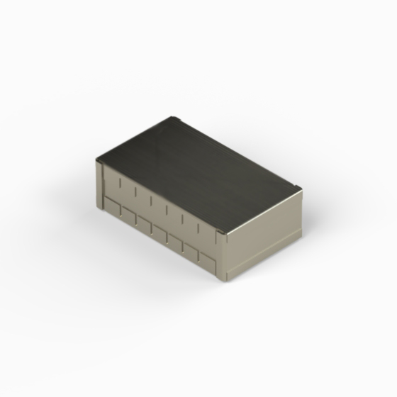 A hot tin-plated steel enclosure with two Snap-On, finger-flanged lids to allow access from top and bottom case.