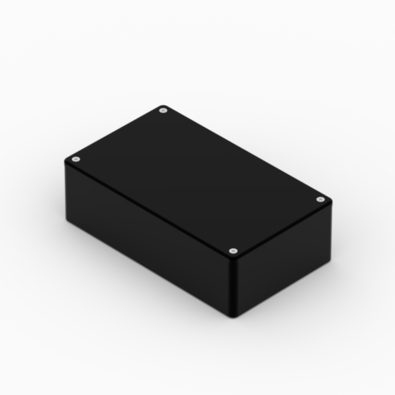 ABS enclosures with rounded corners. Glossy surface finish. The base walls have integral PCB guides.Closing by four screws.